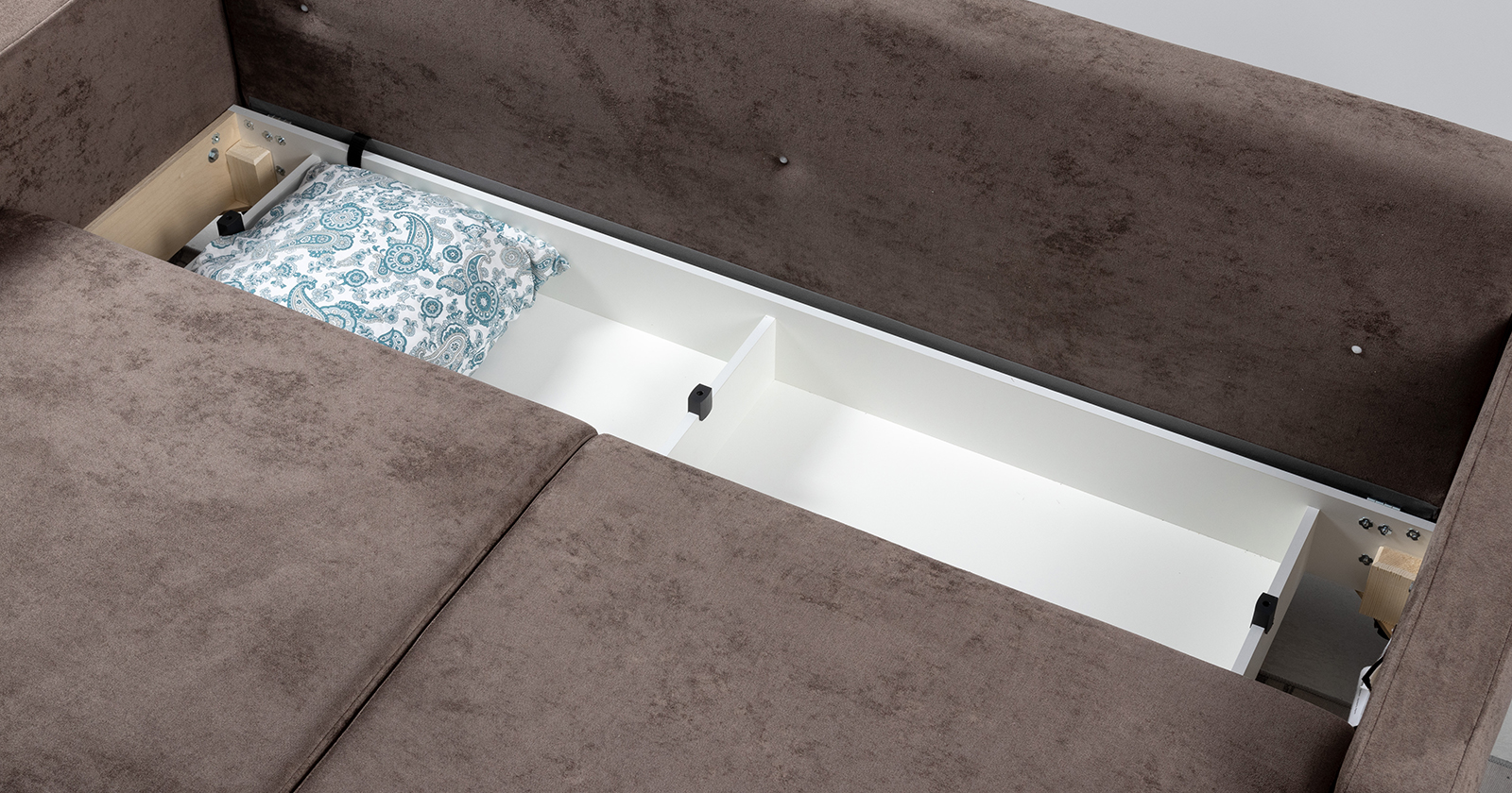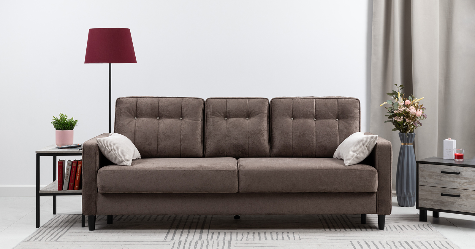 Объемные подушки дивана обеспечивают эргономичную посадку, а ровное спальное место - полноценный ночной отдых.