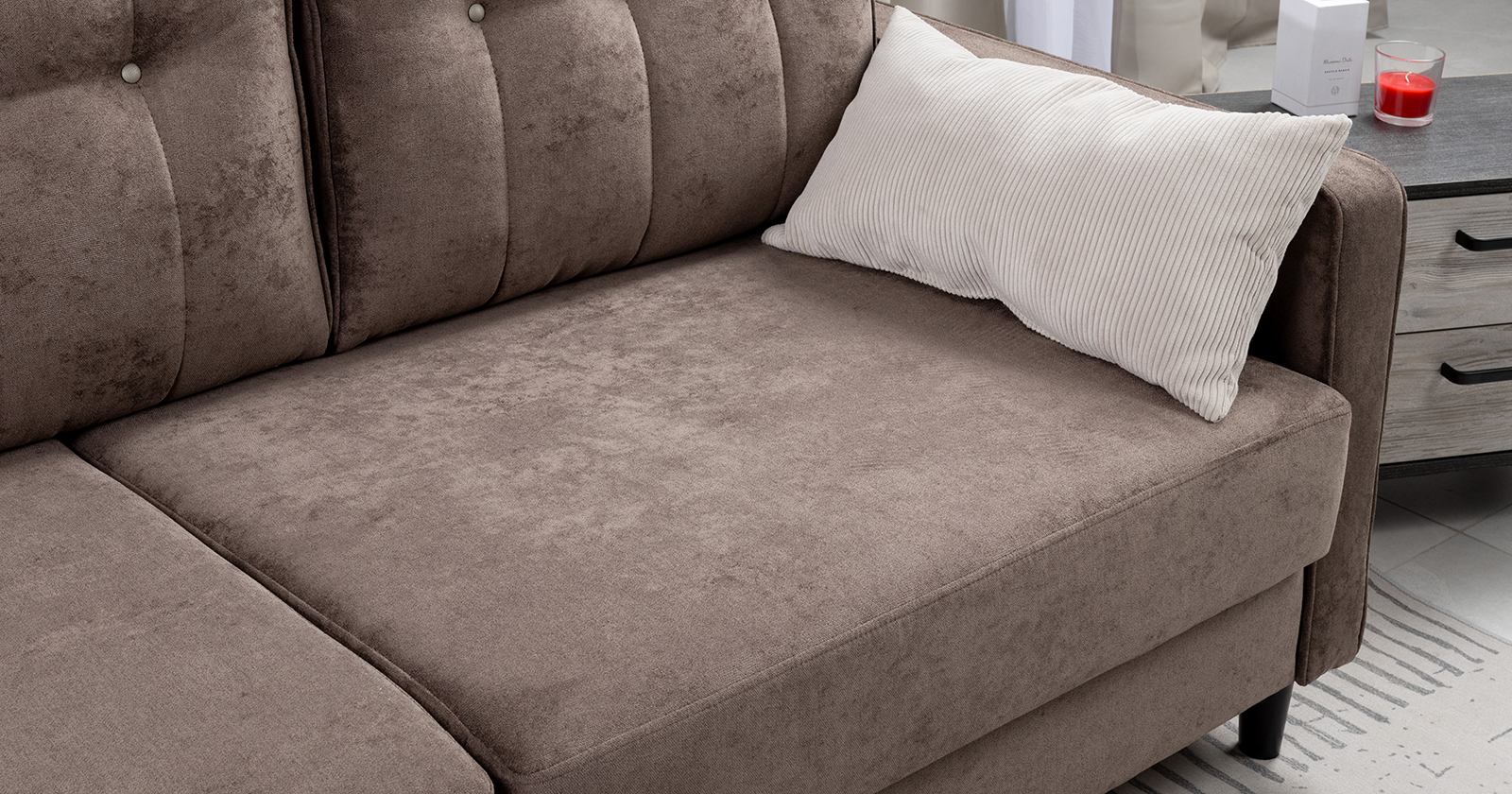 Диван-кровать угловой Арно ТД 564 велюр Лаки 06 коричневый перламутр, Vertical 910 молочно-серый, сборка на любую сторону