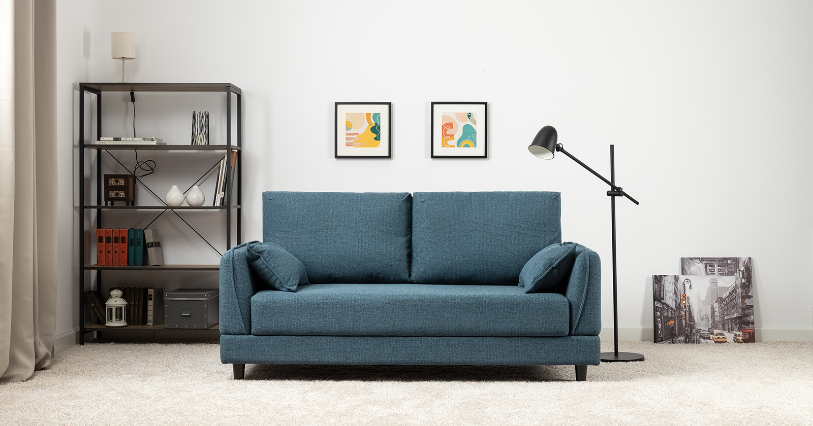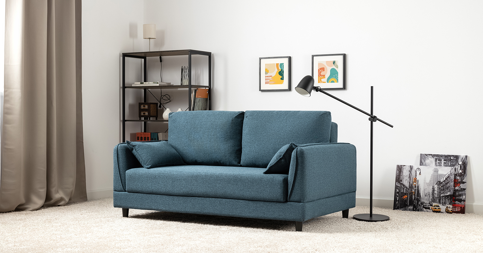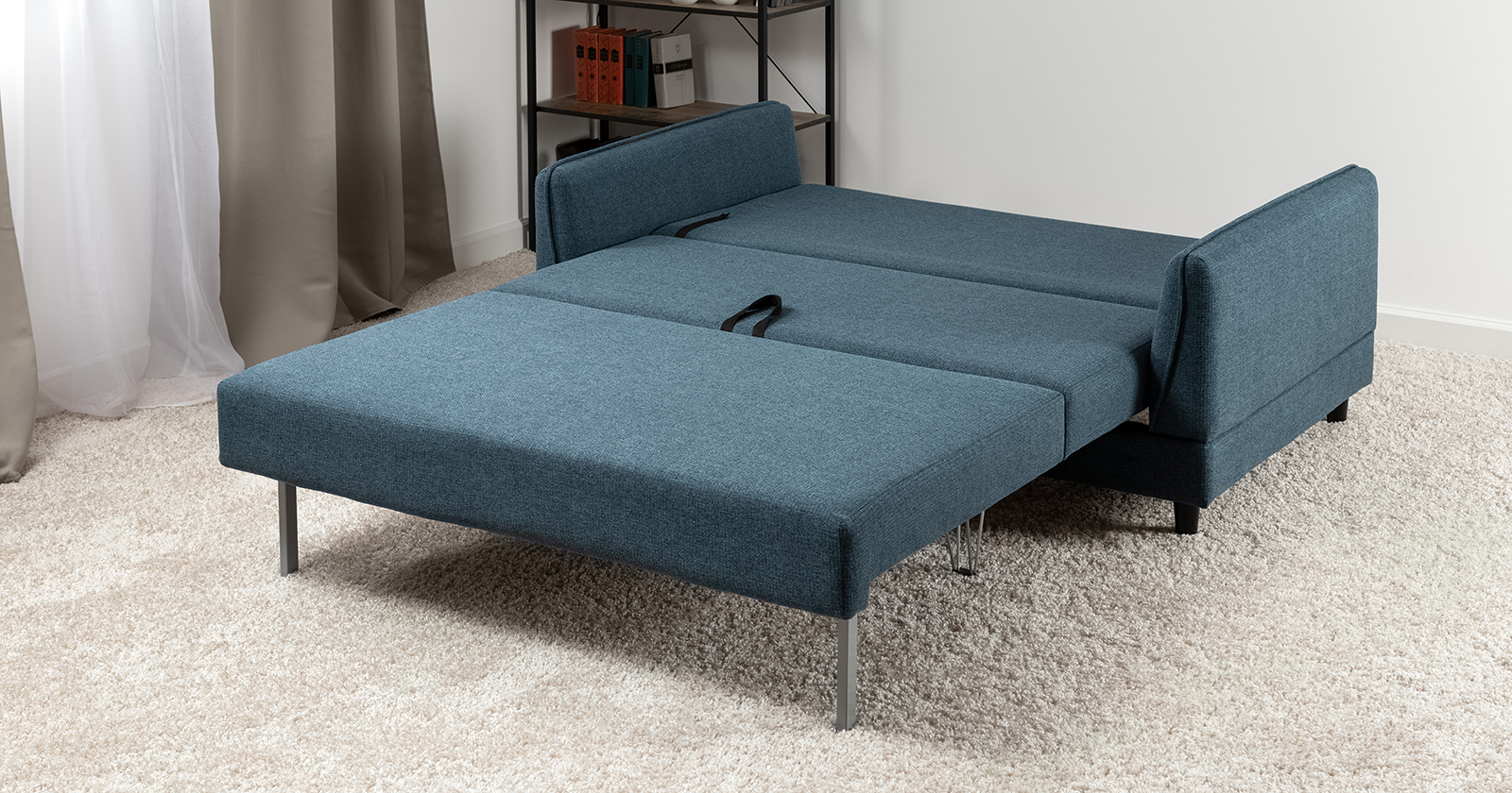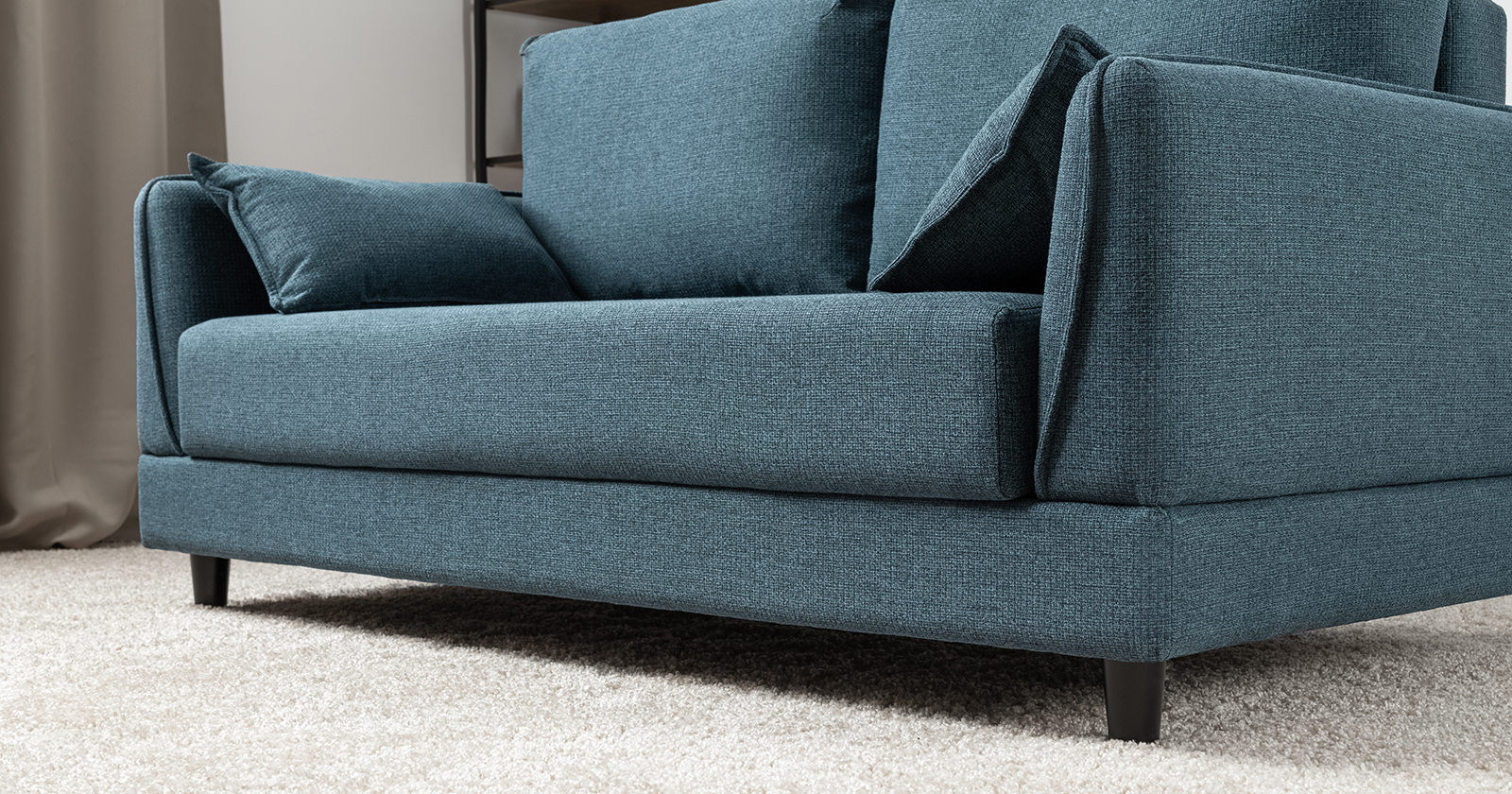 Лаконичный дизайн с деревянными ножками и узкими подлокотниками удачно дополнит не только интерьер гостиной, но и кабинета, и кухни. Кроме того, диван Макс позволяет организовать спальное место в ограниченном пространстве.