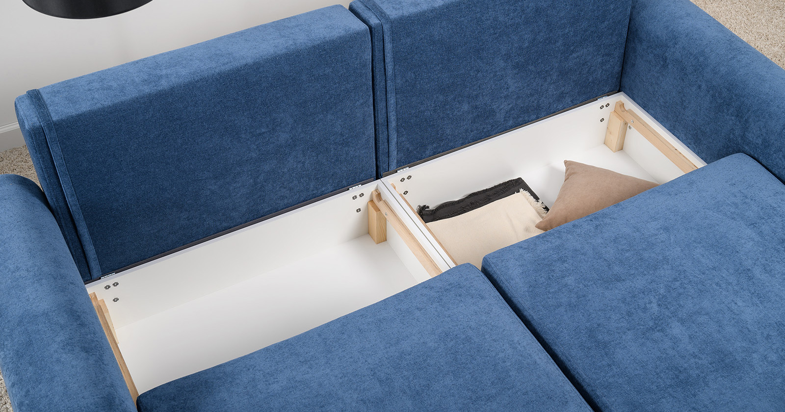 Диван-кровать прямой Тэдди 1504 композиция 1, букле Pique 009 синий, модульная система