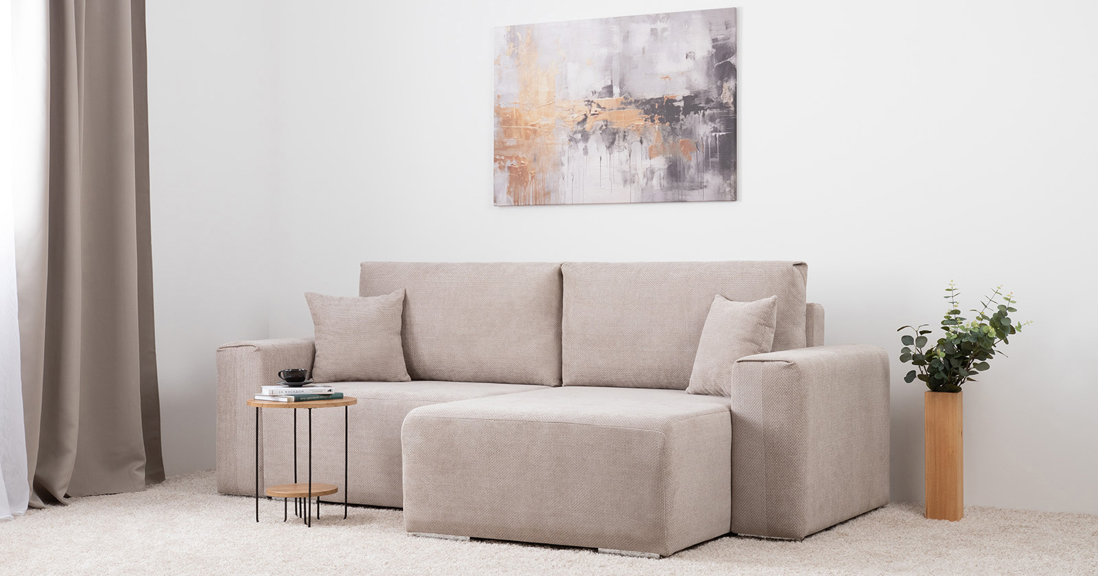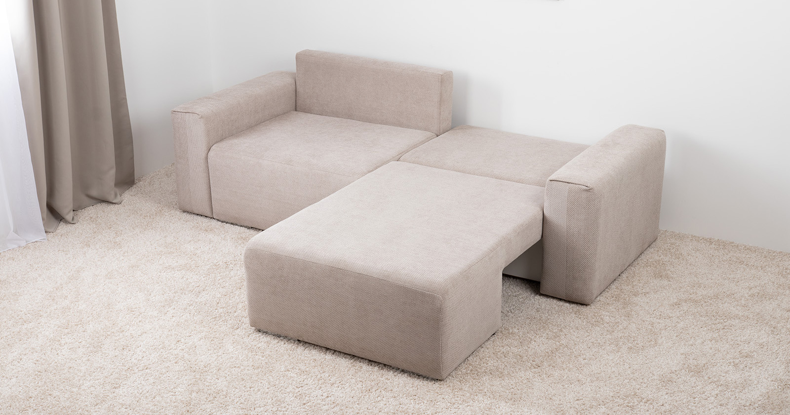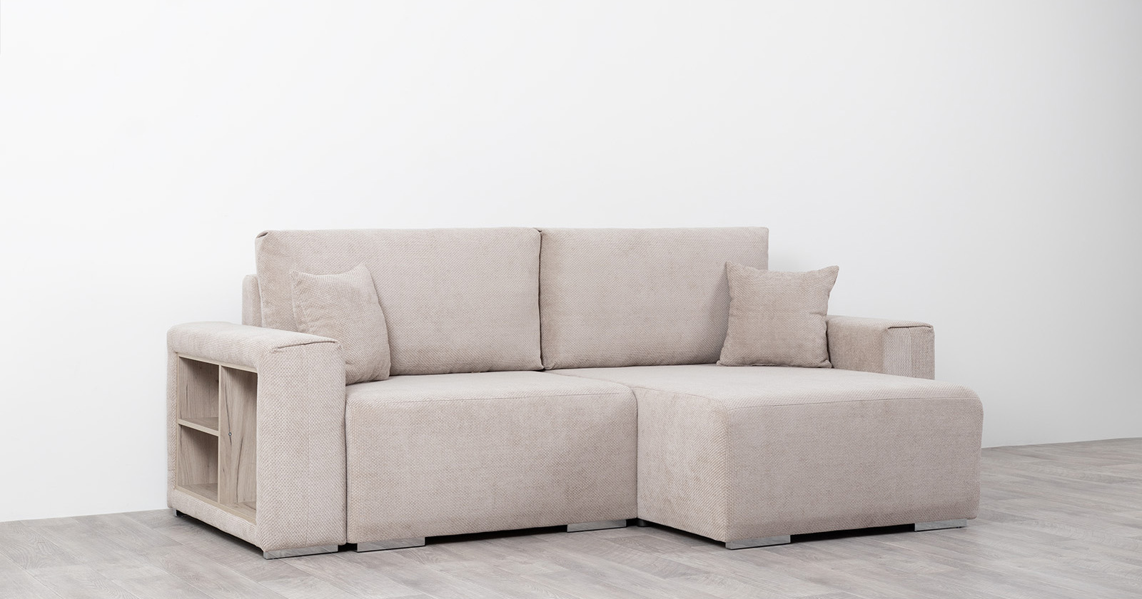 Диван-кровать угловой Тэдди 1502 композиция 2, букле Pique 006 бежевый, модульная система, сборка на любую сторону