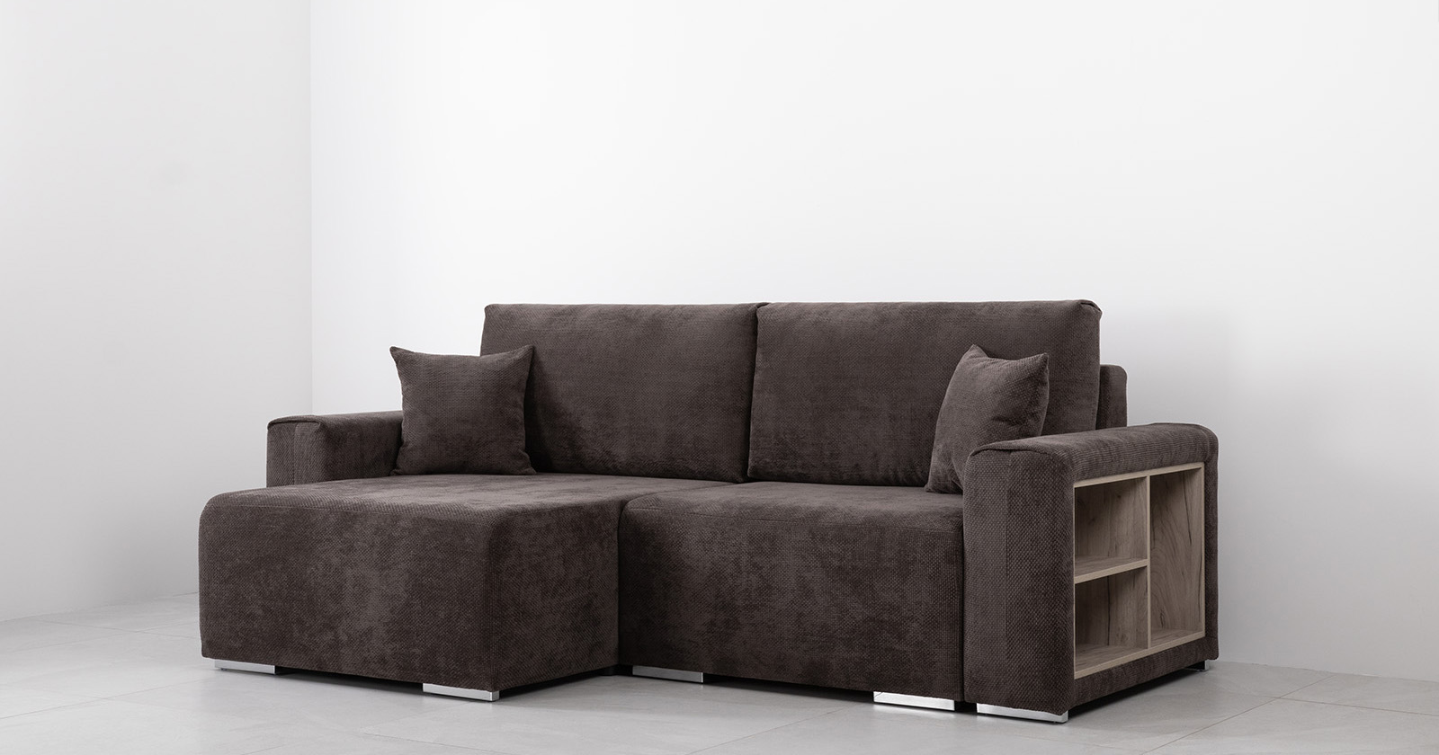 Диван-кровать угловой Оксфорд 711 композиция 1, шенилл Muza 06 темно-коричневый, модульная система, сборка на любую сторону