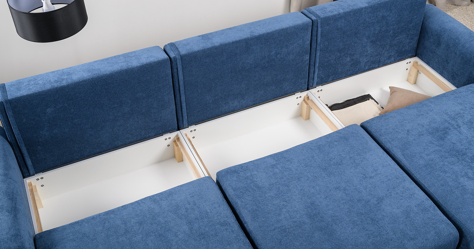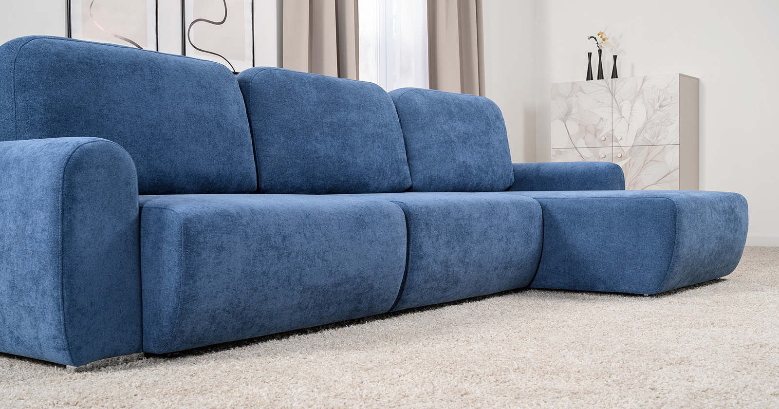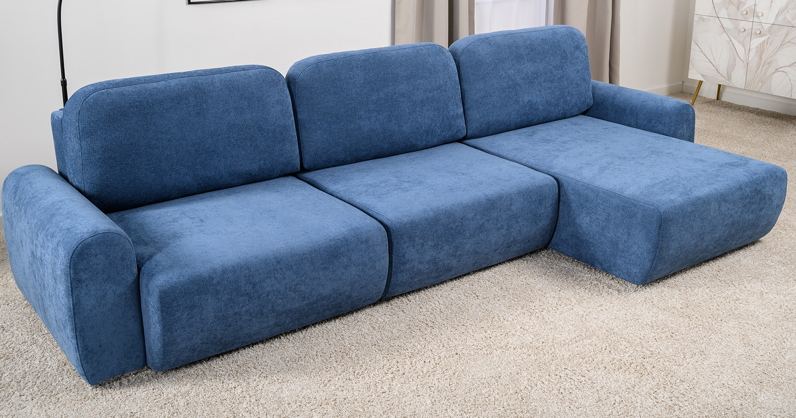 Диван-кровать угловой Тэдди 1504 композиция 3, букле Pique 009 синий, модульная система, сборка на любую сторону
