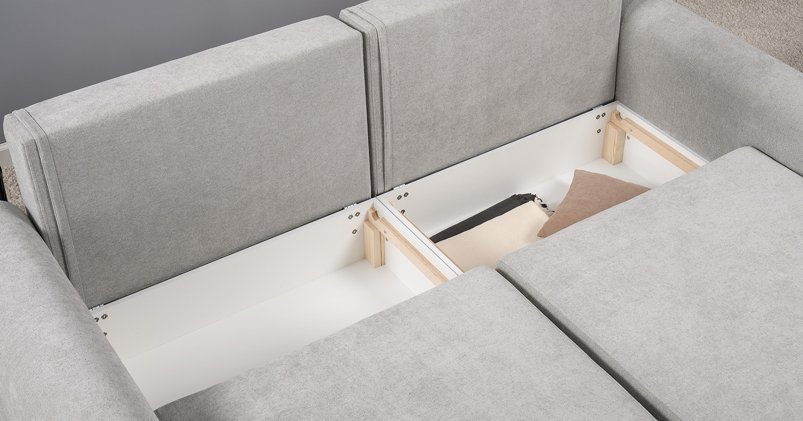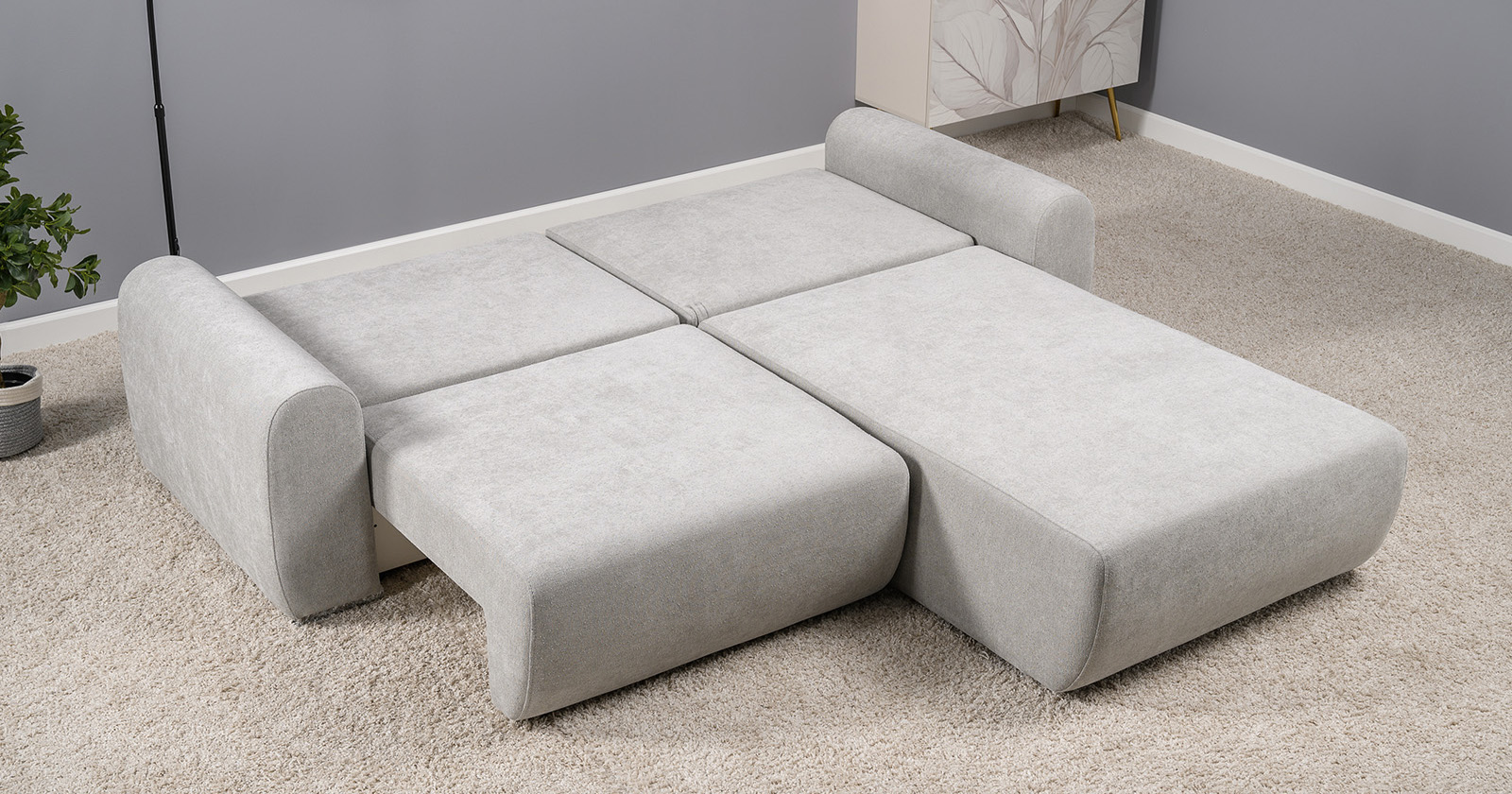 Диван-кровать угловой Тэдди 1506 композиция 2, букле Pique 011 серый, модульная система, сборка на любую сторону