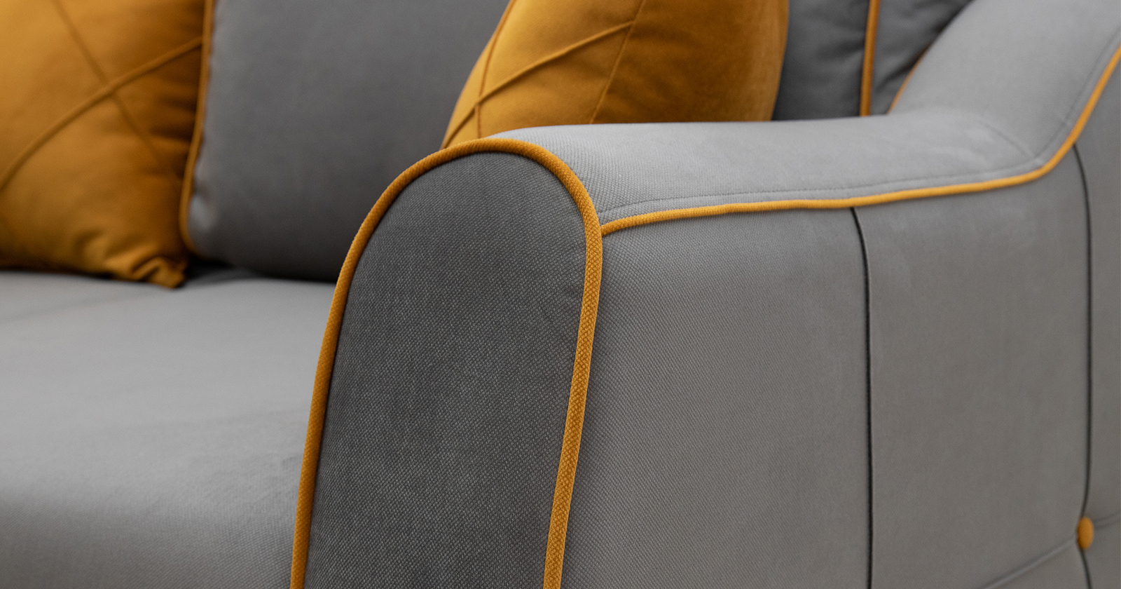 Декоративный кант, пуговицы, отстрочка, утяжки на подушке и подлокотниках