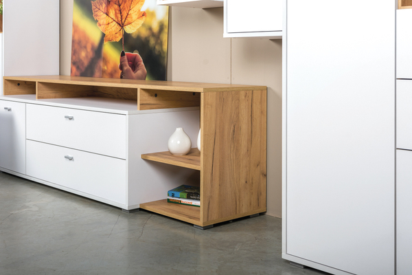 Тумба под ТВ в гостиную Бэль 10.91 белый премиум, дуб золотой CRAFT