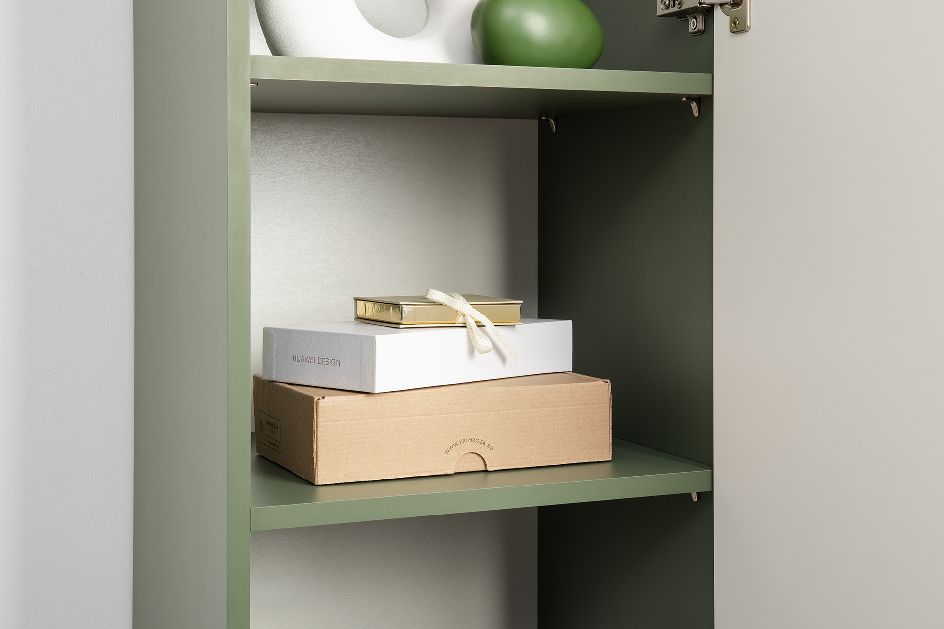 Шкаф навесной Марион 16.334 дымчатый зеленый K521, олива шагрень AG 1050 ПВХ (собирается на любую сторону)