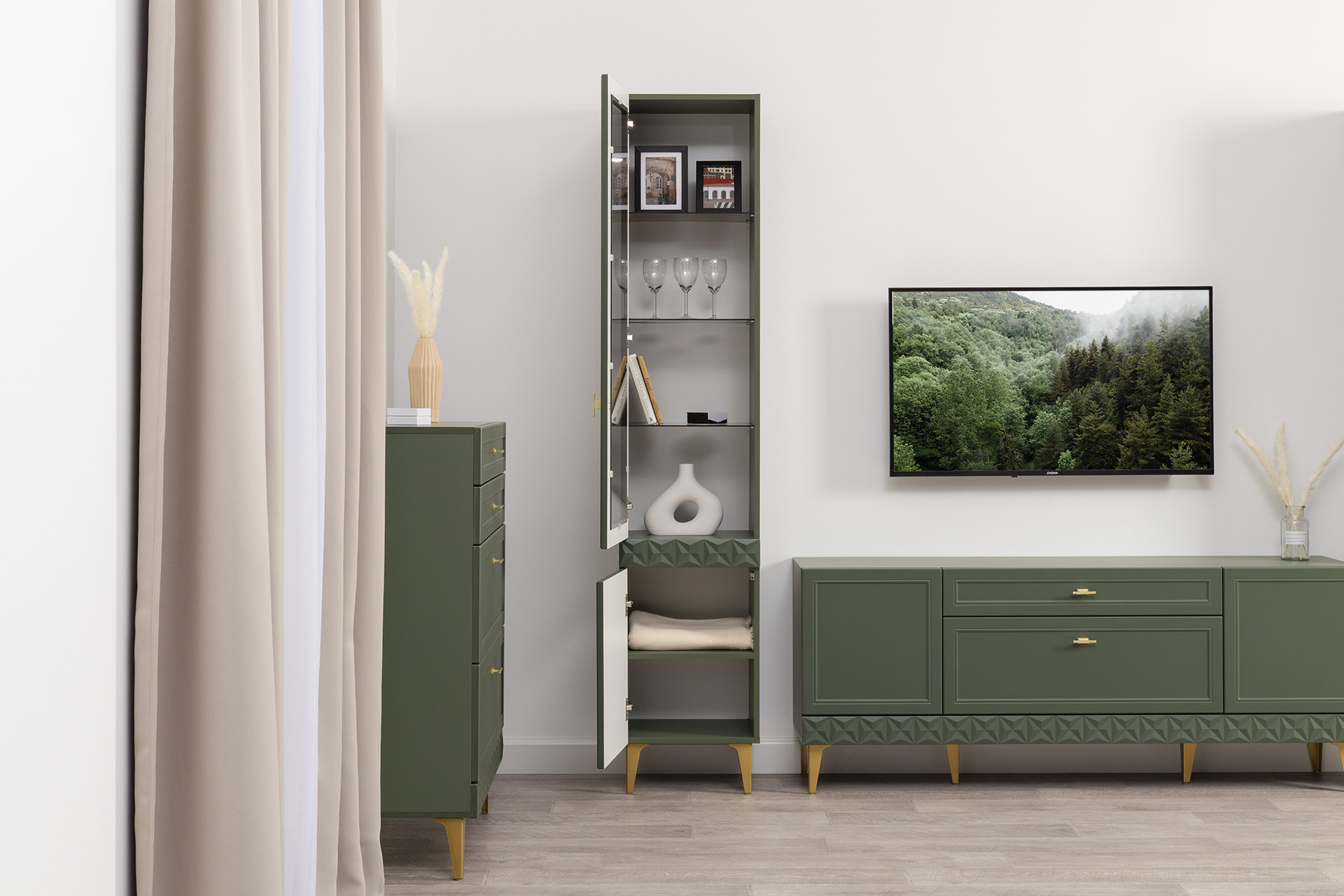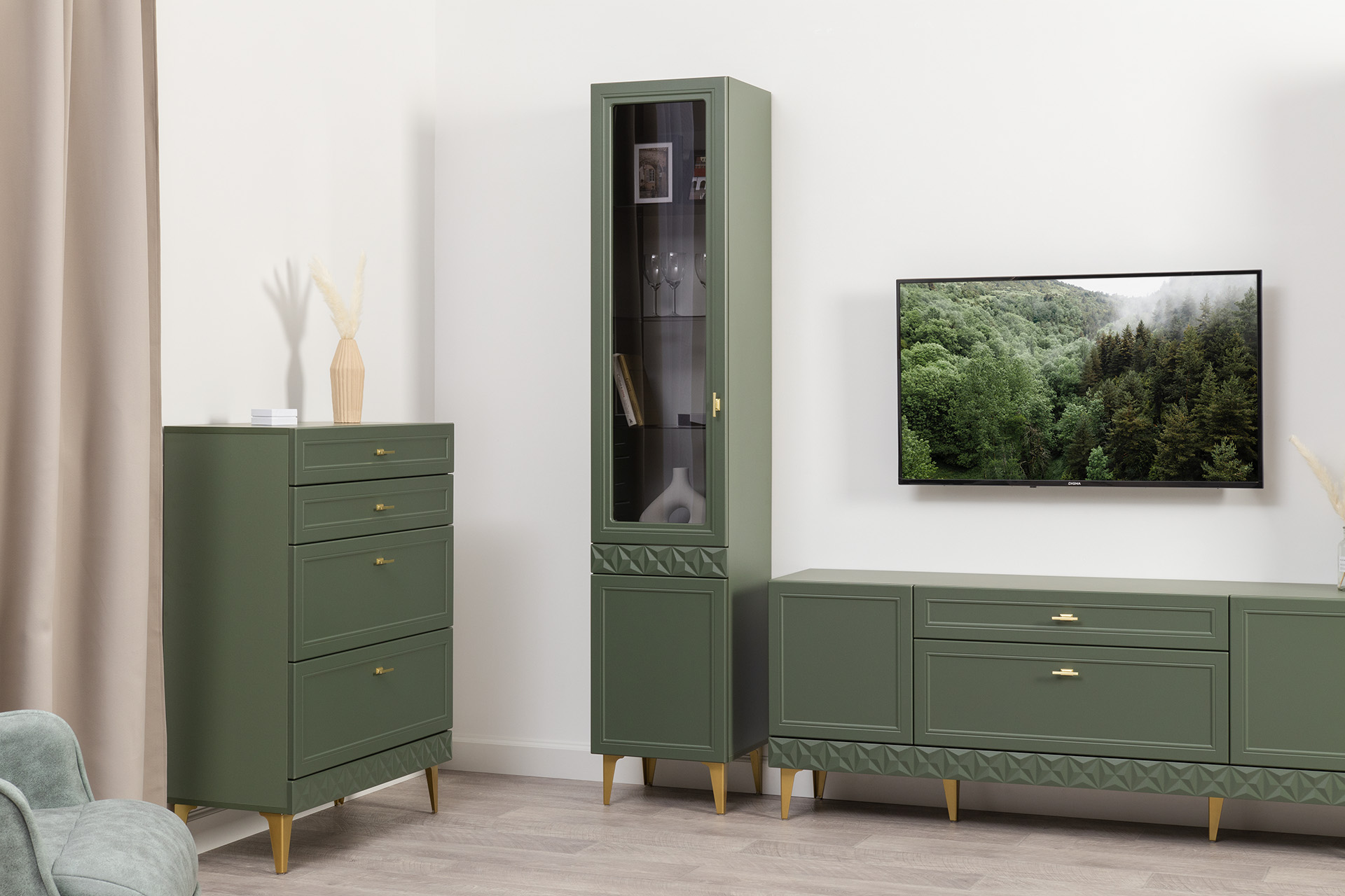 Шкаф-витрина Марион 16.397.02 дымчатый зеленый K521, олива шагрень AG 1050 ПВХ
