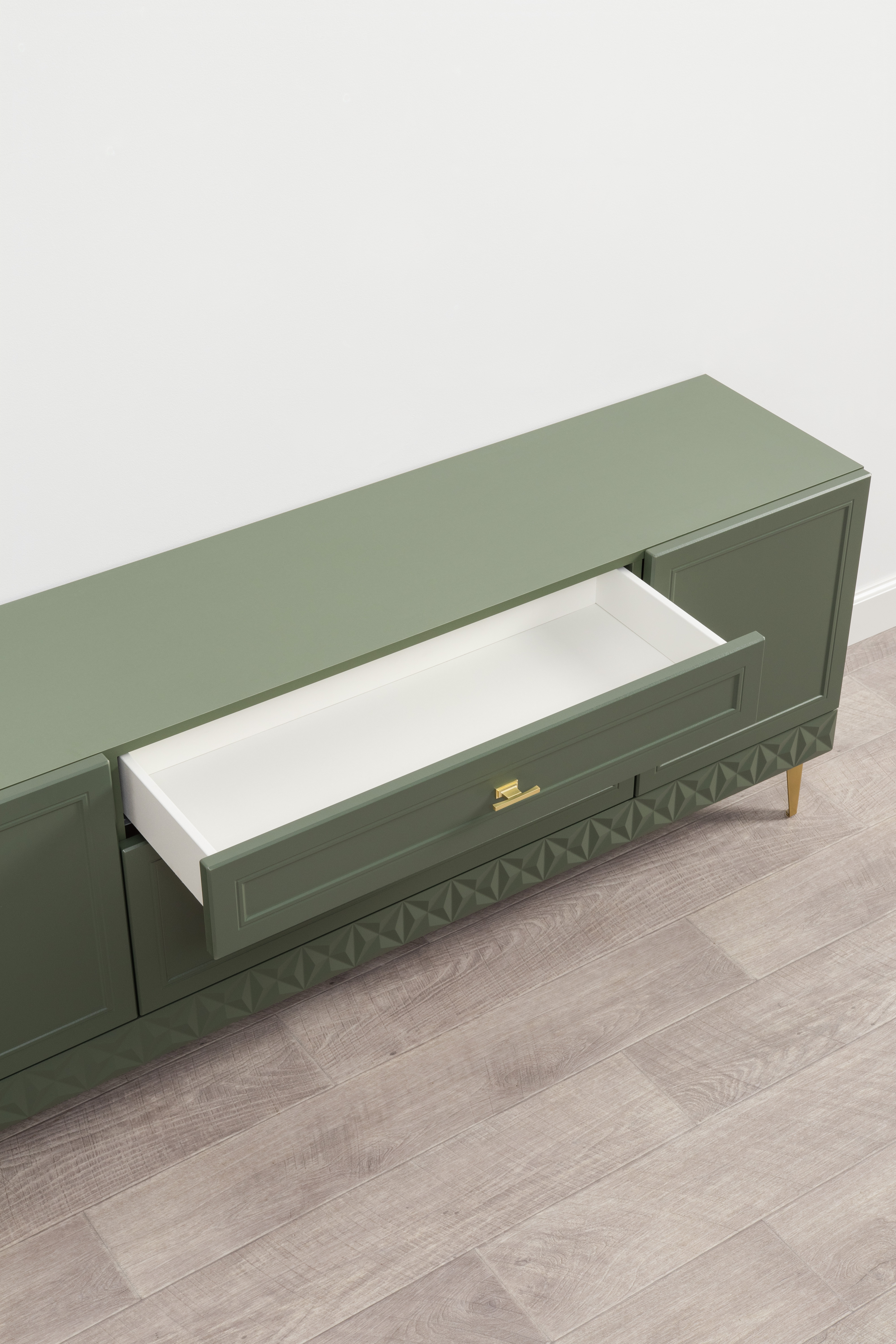 Гостиная Марион композиция 1 дымчатый зеленый K521, олива шагрень AG 1050 ПВХ, белый PE шагрень (собирается на любую сторону)
