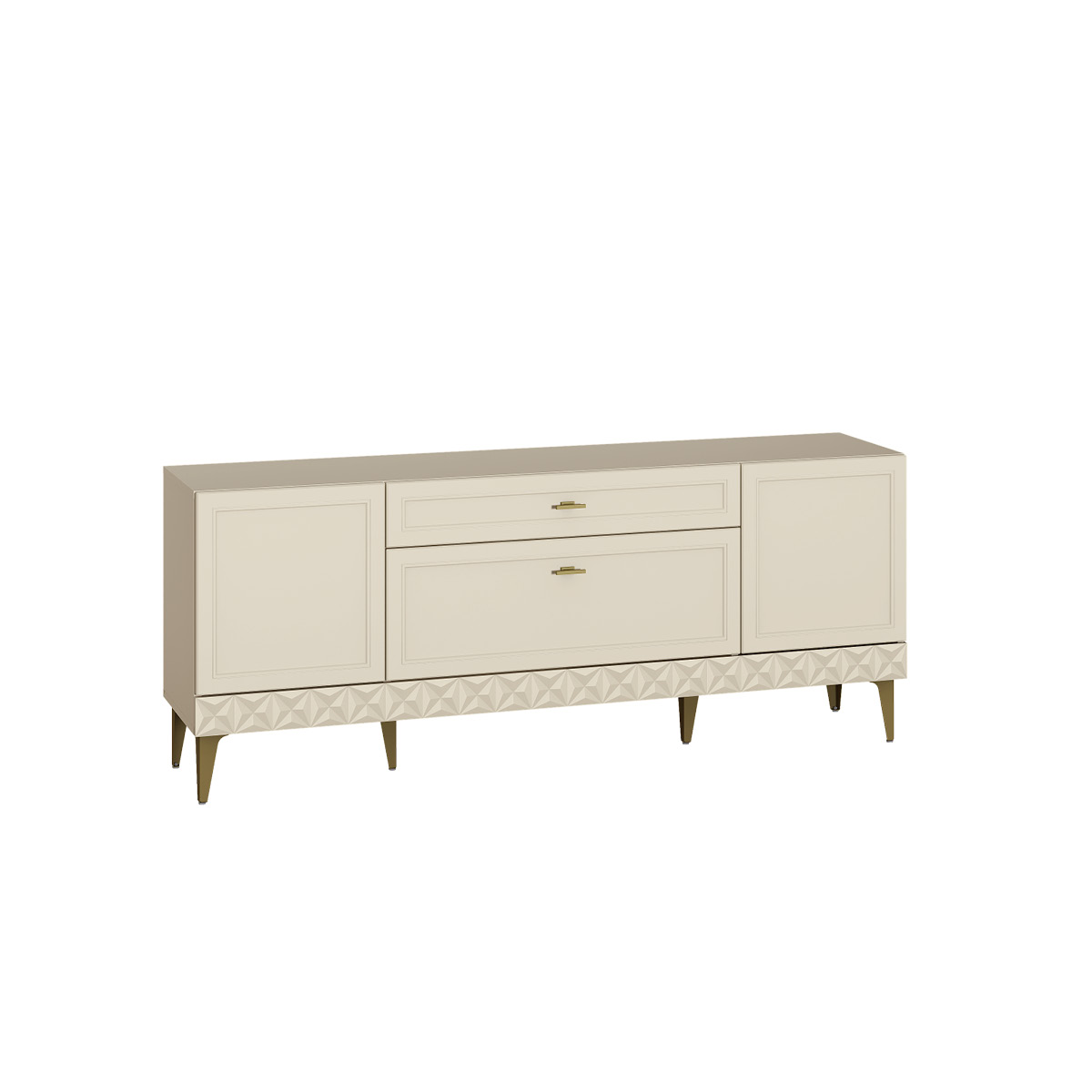 Изящные линии, глубокая фрезеровка фасадов из МДФ и благородные оттенки. Утончённая «Слоновая кость» и изысканная «Олива Шагрень» с глубоким зелёным тоном — создают атмосферу уюта, тепла и благородства. Металлические ручки и опоры золотого цвета придают мебели утончённый блеск, а петли и направляющие с доводчиками обеспечивают плавное и бесшумное закрытие фасадов.