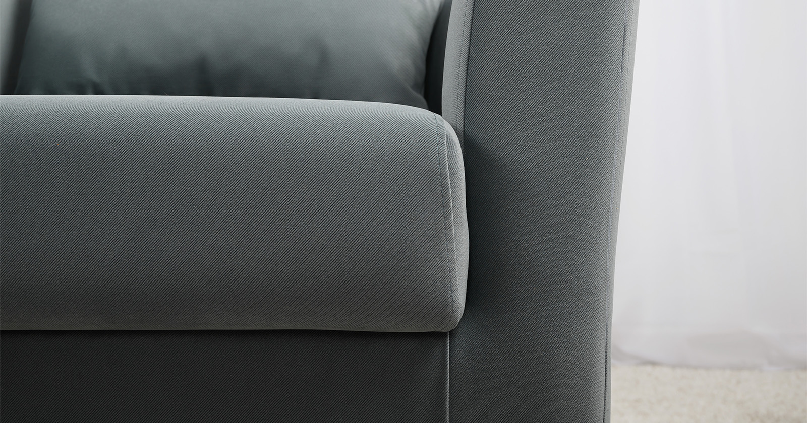Декоративная утяжка на спинке кресла, декоративная подушка в цвете кресла, металлические опоры переходят в декоративный элемент подлокотника