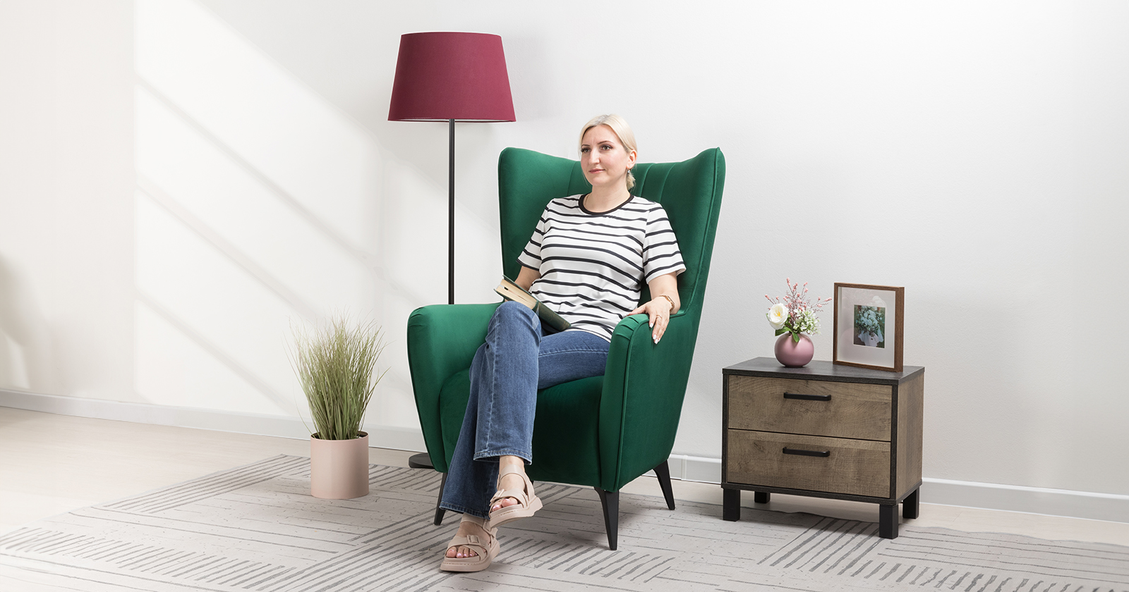 Классическое каминное кресло в современном прочтении. Элегантное кресло дополнит диван Ноэль или поможет организовать уголок для отдыха в гостиной, спальне или на лоджии. Высокая спинка с поясничной подушкой равномерно распределяет нагрузку на позвоночник, что позволяет качественно отдохнуть и расслабиться.