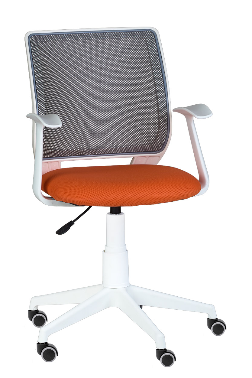 Кресло Эксперт белый каркас, спинка сетка серый, сидение TW оранж, подлокотник пластик Т образный, крестовина пластик, без качания