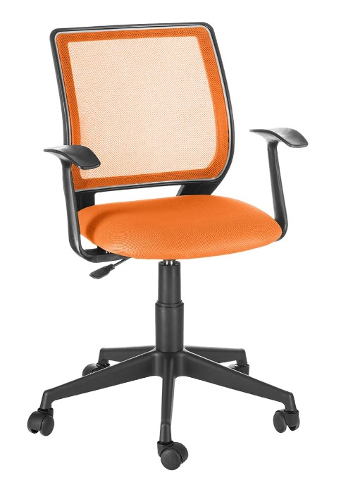 Кресло на колесах Ирис люкс обивка ткань-сетка TW сидушка оранж, спинка черный, подлокотники пластик, крестовина пластик, механизм качания