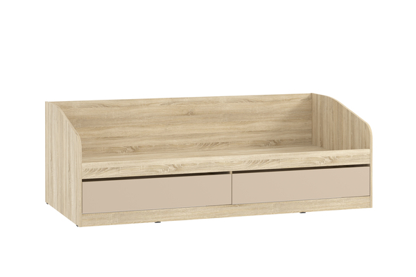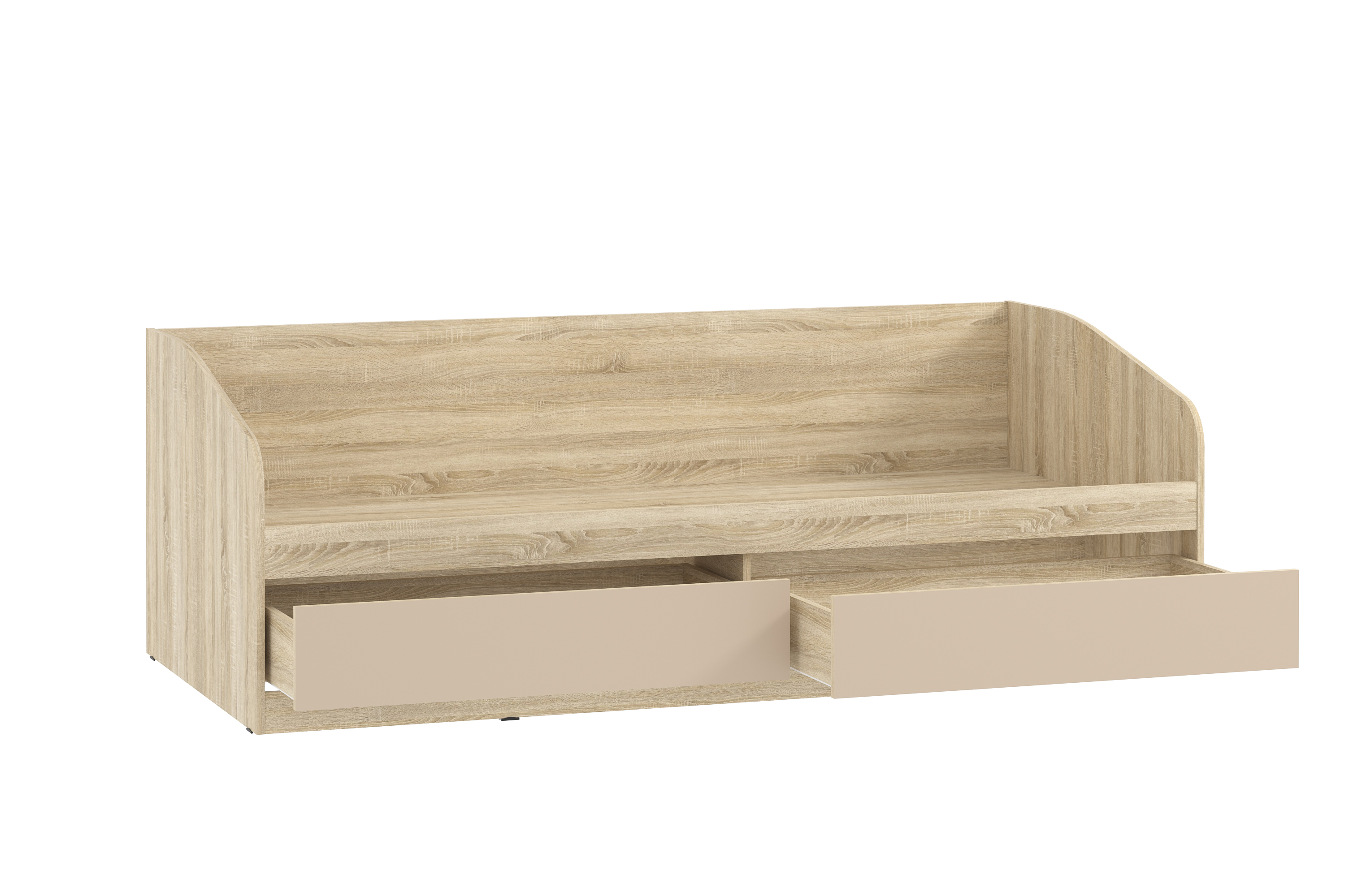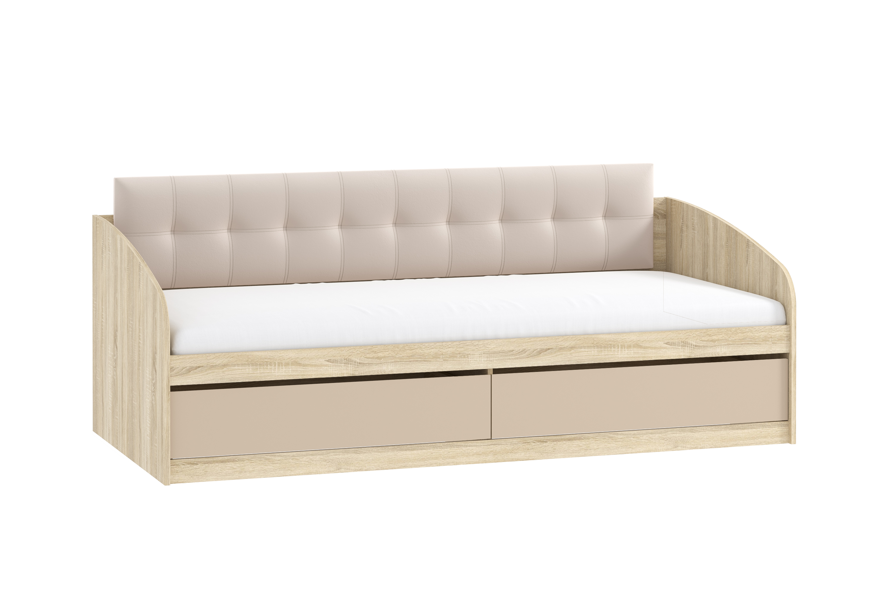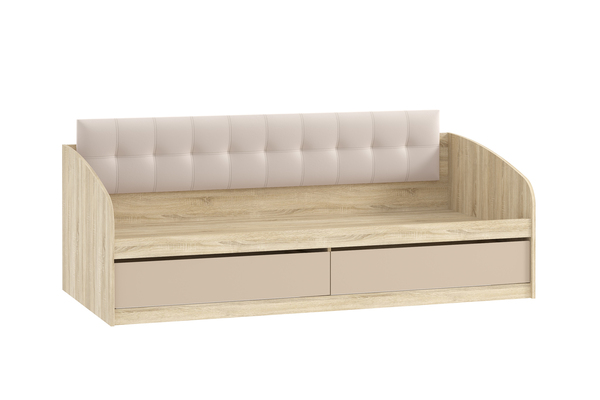 Кровать детская Акварель НМ 041.50 дуб сонома, капучино с мягкой спинкой Дабл велутто 16 велюр бежевый