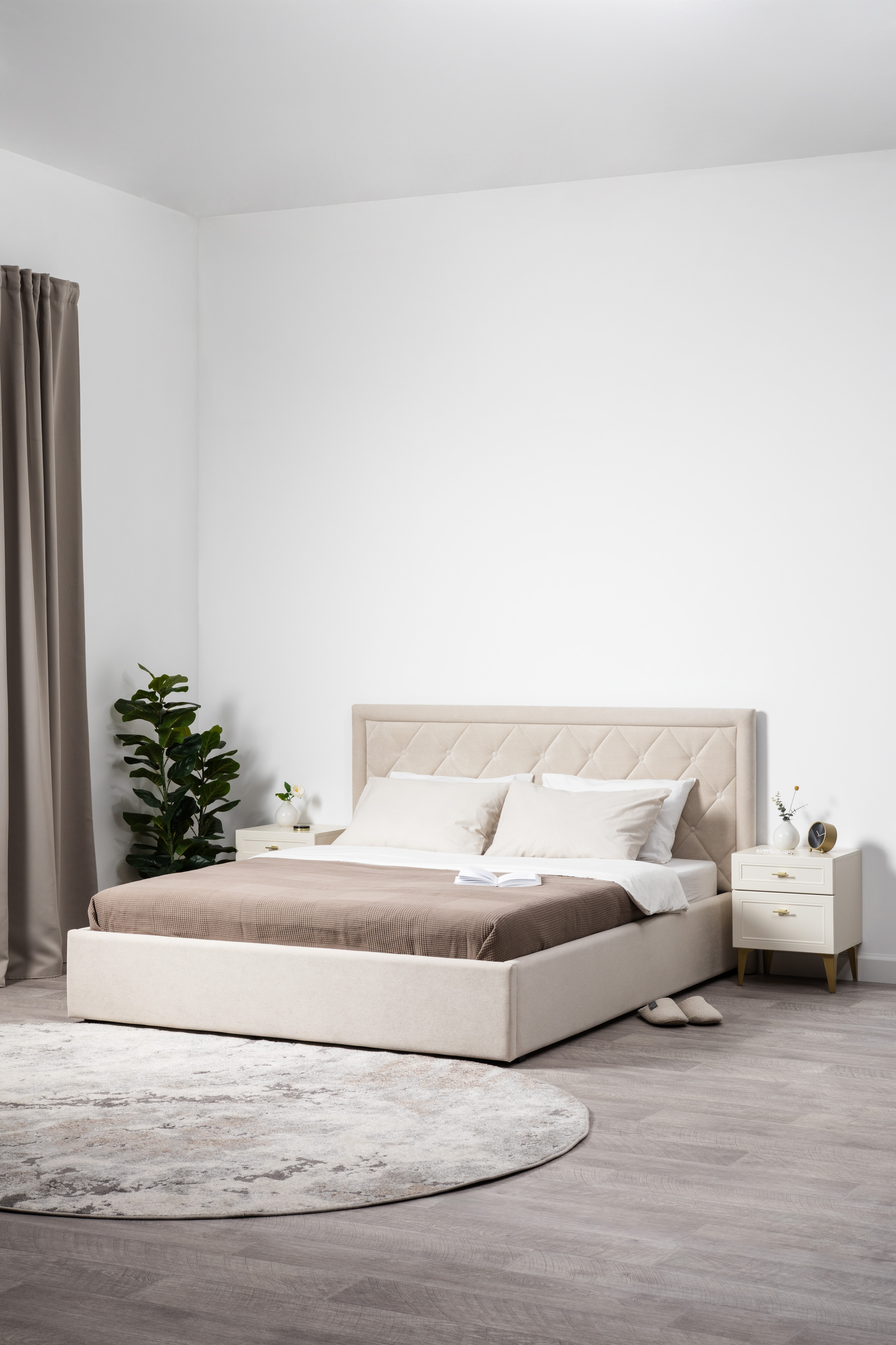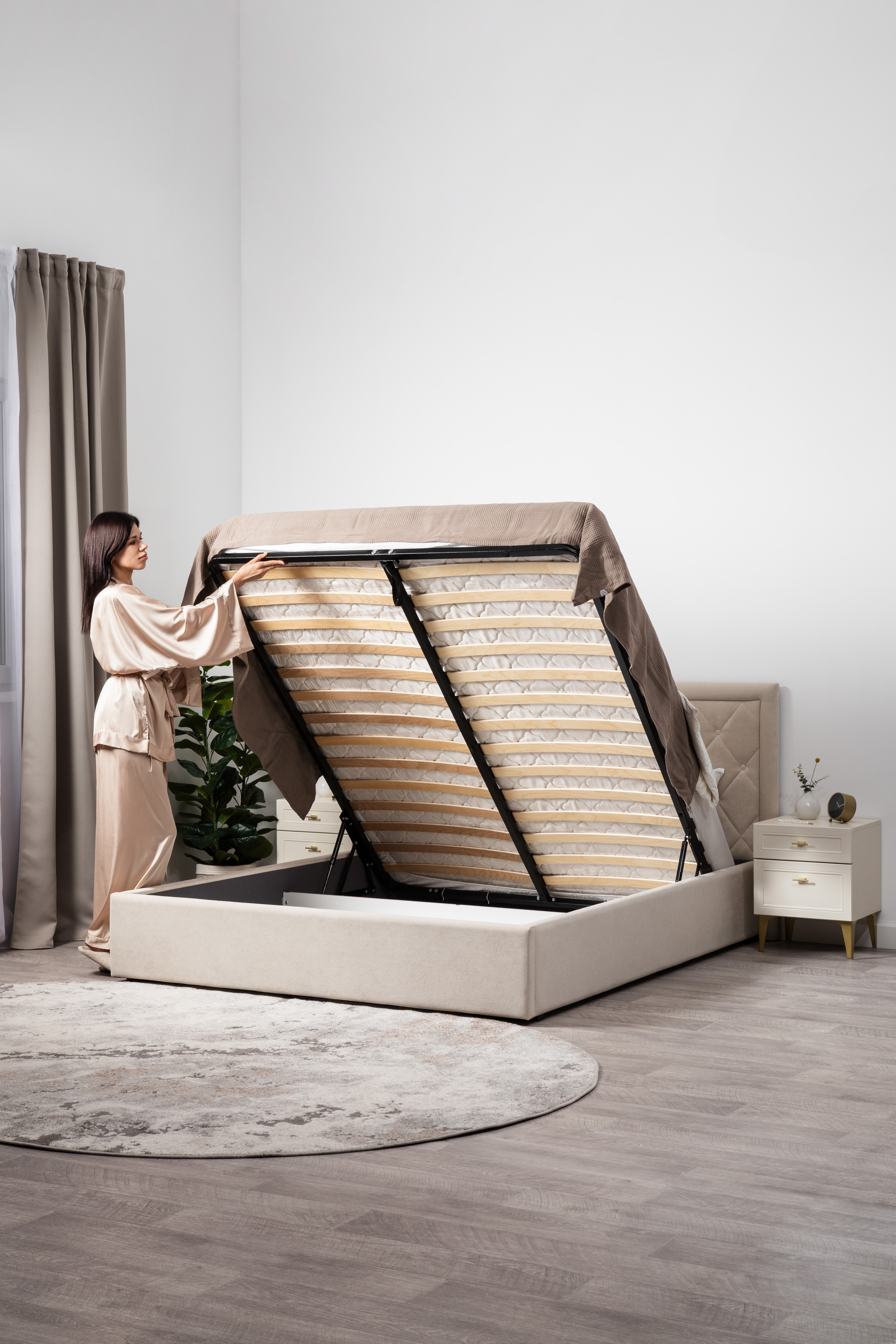 Кровать Марион 160 велюр OCEAN 002 бежевый с ортопедическим основанием и подъемным механизмом (спальное место 160 х 200)
