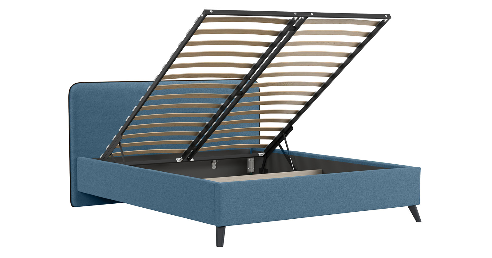 Кровать Миа 160 рогожка светло-синий, кант желтовато-коричневый с ортопедическим основанием и подъемным механизмом