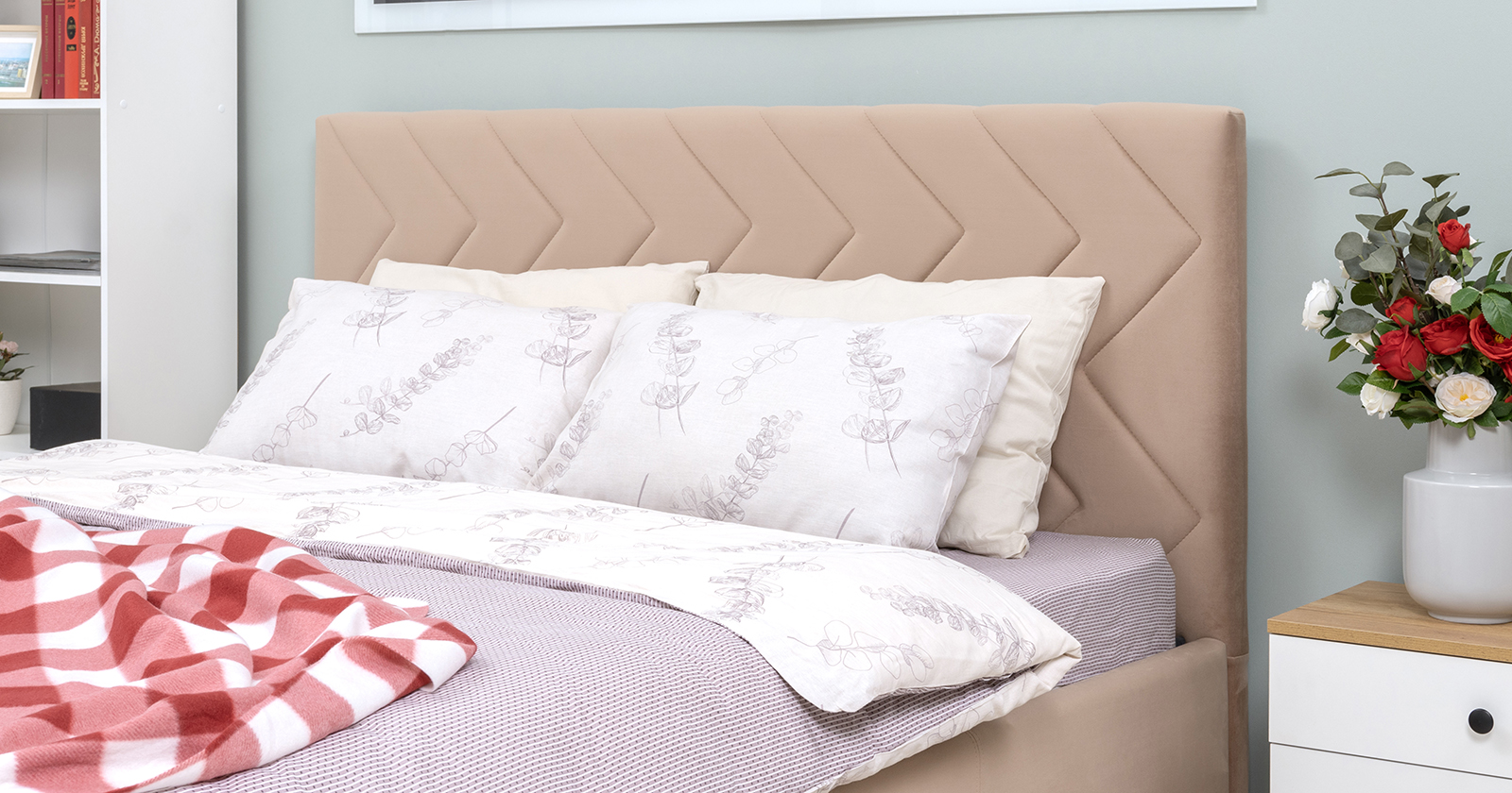 Основание кровати укомплектовано матрасодержателями. Жесткое кроватное дно из ЛДСП 16 мм. Задняя стенка изголовья выполнена в тех. ткани (спанбонд).