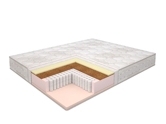 Матрас разносторонней жёсткости обеспечивает энергичную, упругую поддержку тела за счет комбинации материалов кокоса и латекса, а слой ортопедической пены позволяет расслабиться после тяжелого дня.