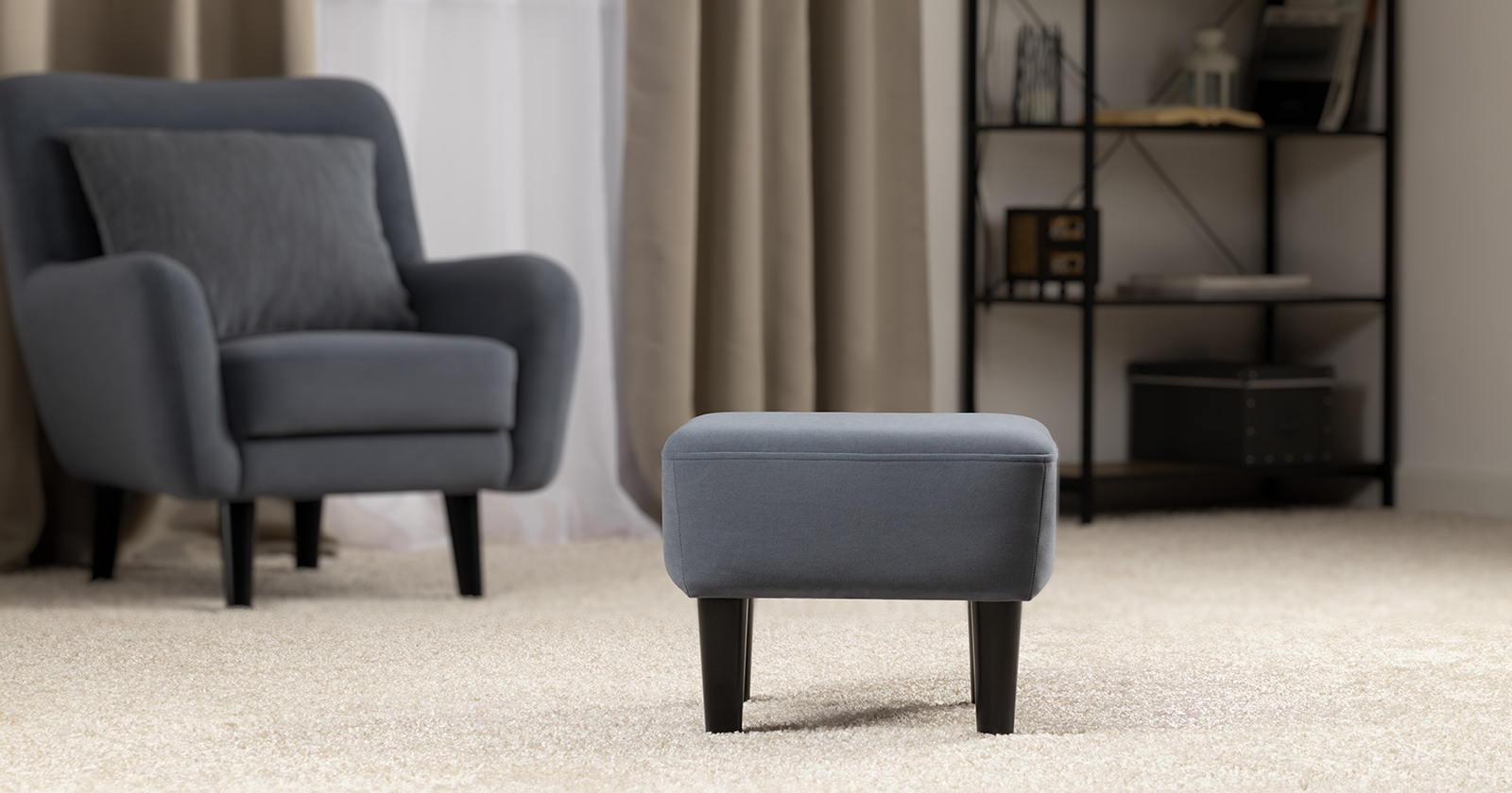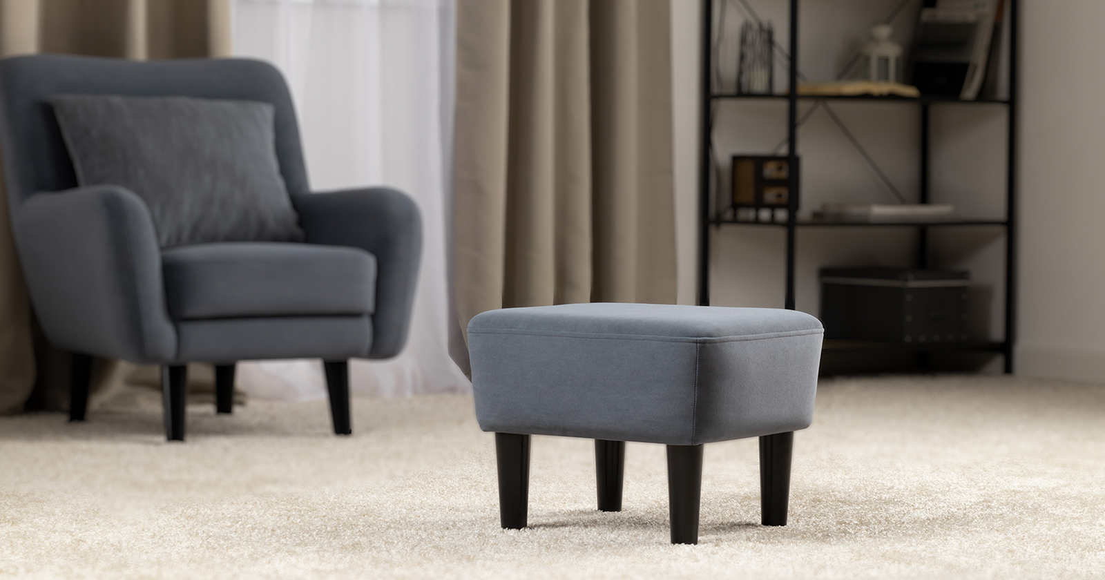 Мягкие линии и визуальная легкость — отличительные черты пуфа Дакота. Гармонично дополнит диван и кресло из этой коллекции.