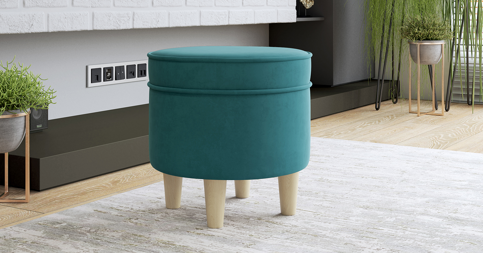 Комплект состоит из прямого и углового диванов, кресла для отдыха и пуфа.