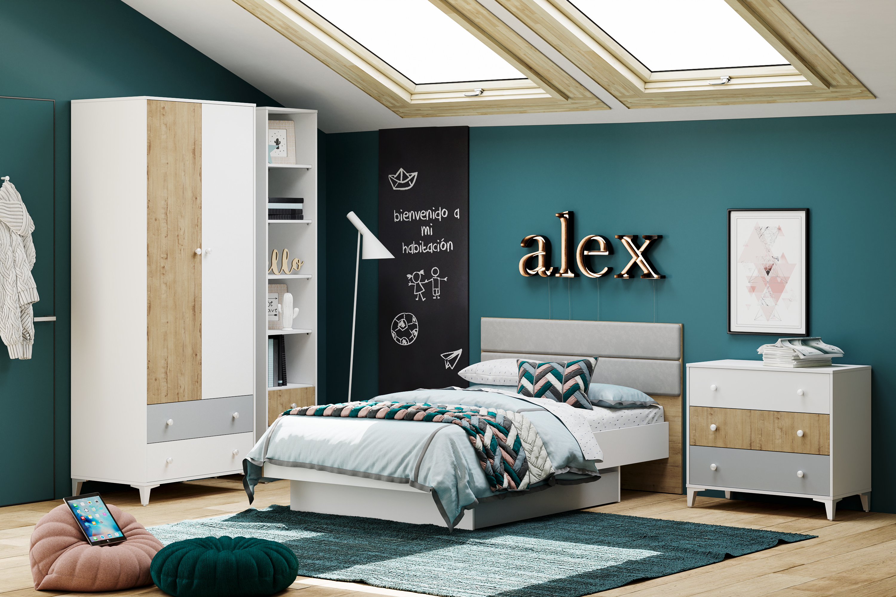 Детская комната Морти композиция 1 дуб бунратти, серый, белый, велюр Вивальди 2