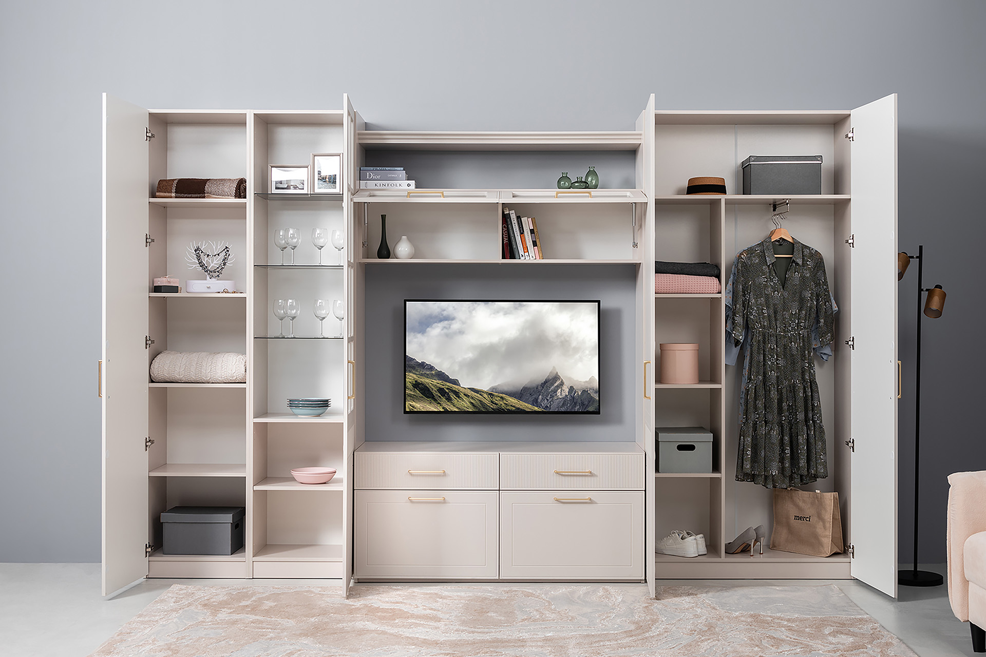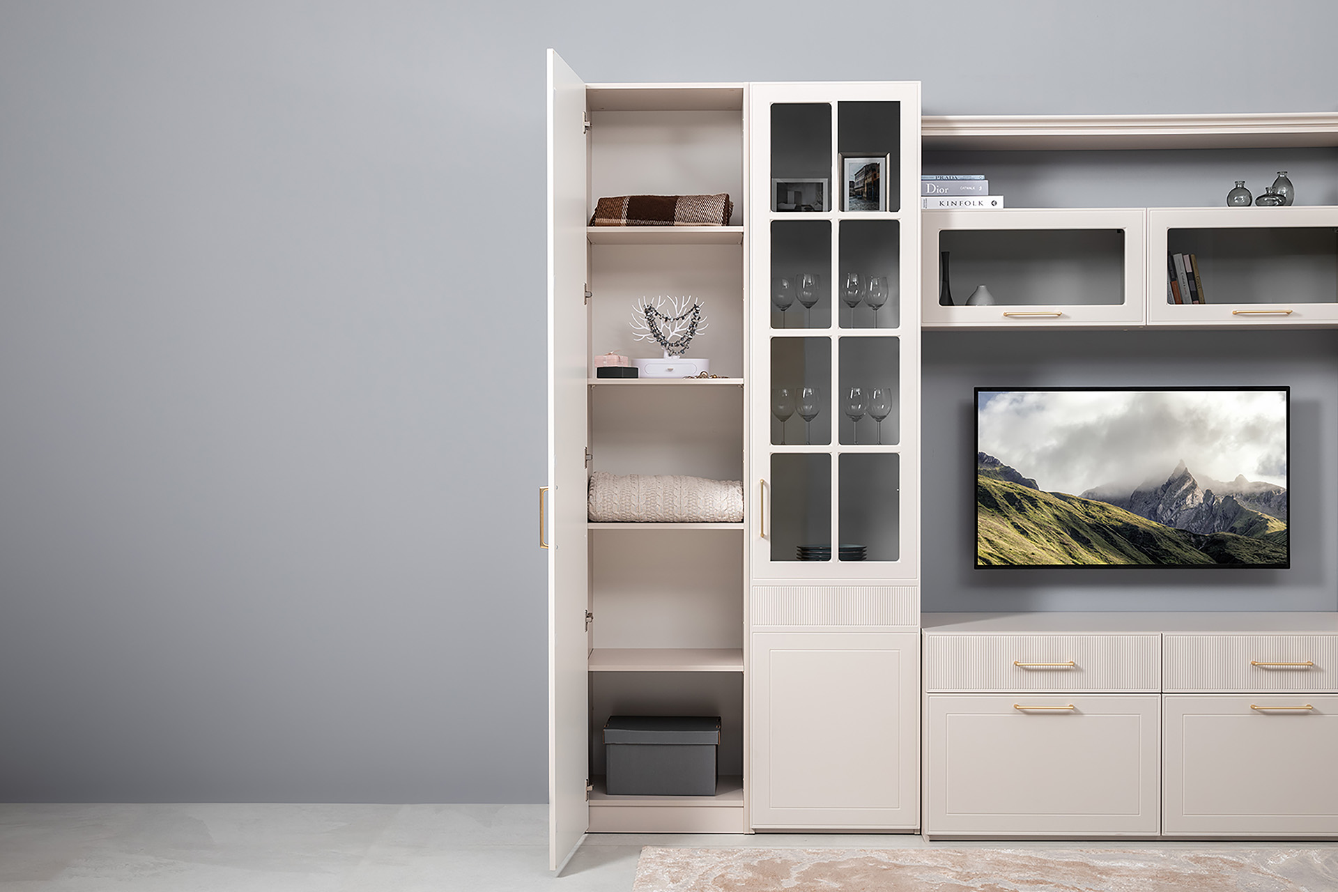 Шкаф-пенал Ричфорд 16.327.01 кашемир 5981 BS, моно керамика D166-2 ПВХ (собирается на любую сторону)