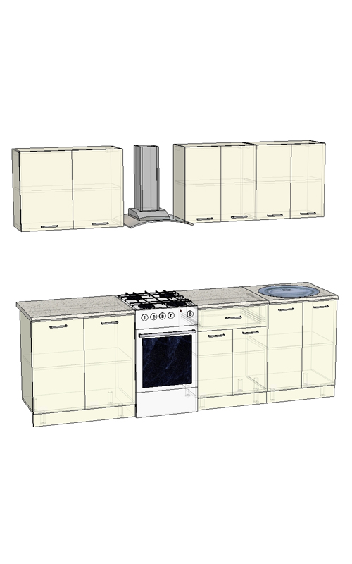 Модули в данном комплекте 60, 60 и 80 см, посудосушитель и мойку можете выбрать в разделе Комплектующие кухни.