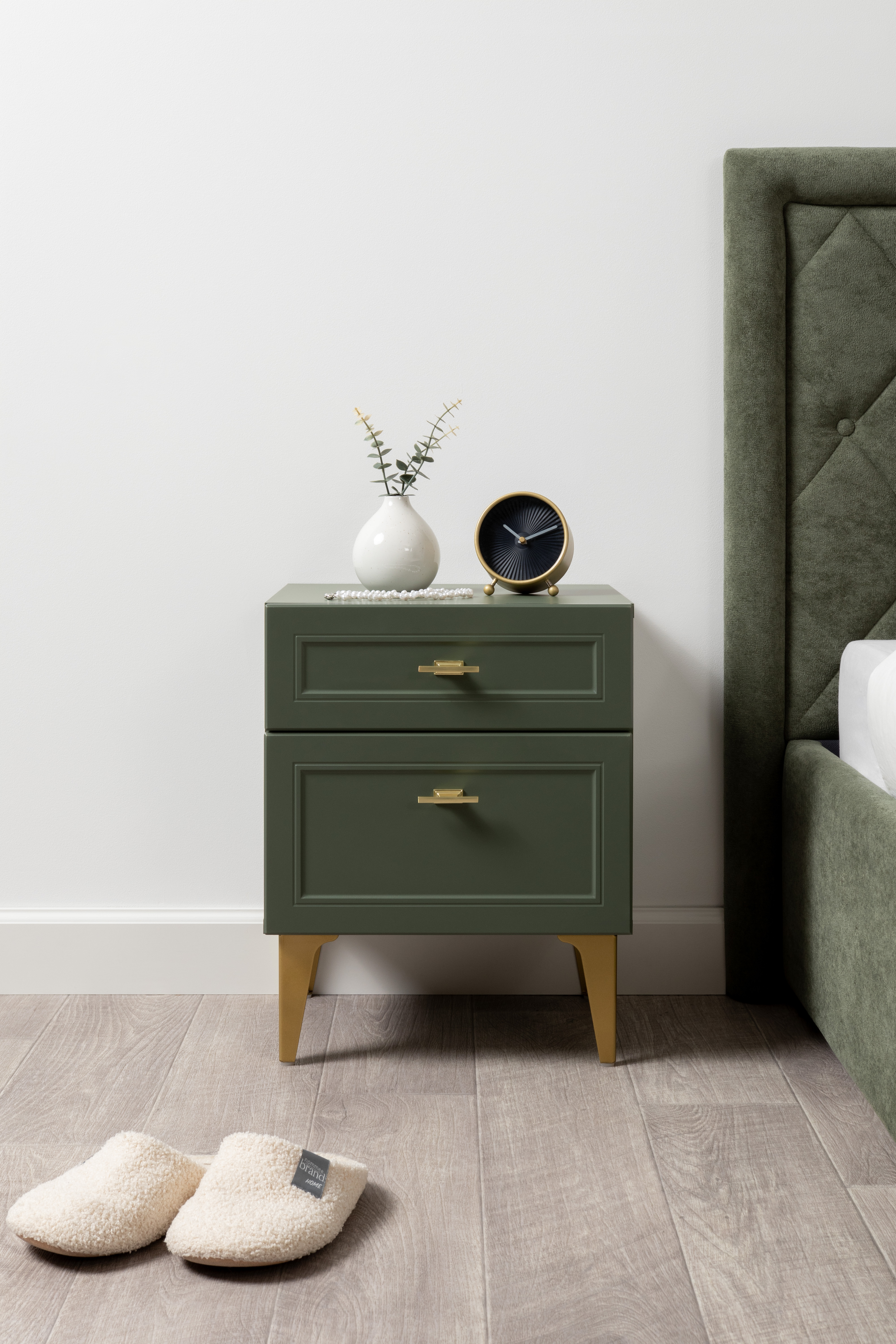 Тумба прикроватная Марион 16.14 дымчатый зеленый K521, олива шагрень AG 1050 ПВХ, белый PE шагрень