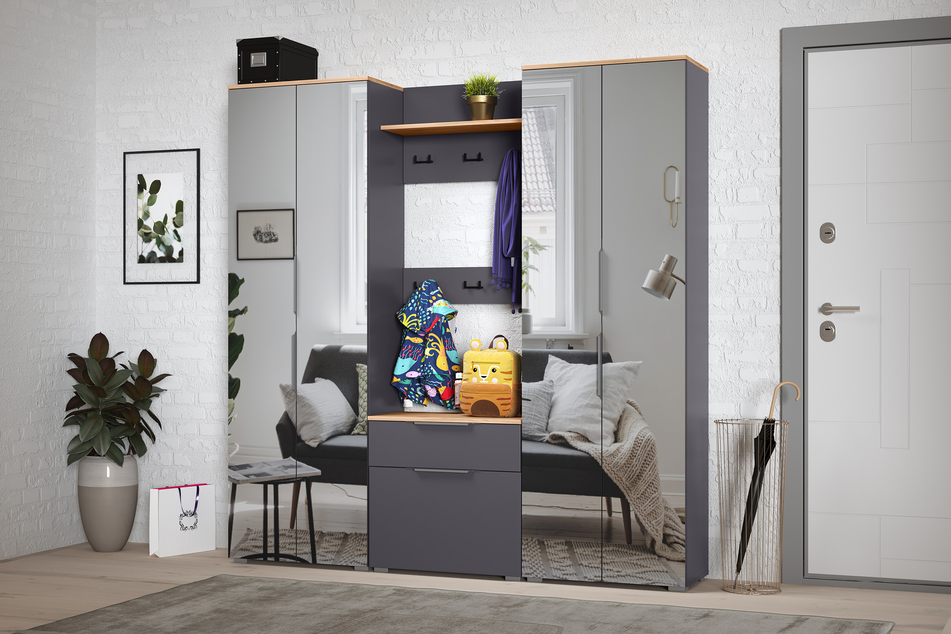 Шкаф для одежды Октава 13.338 серый графит 0162 РЕ, дуб золотой CRAFT